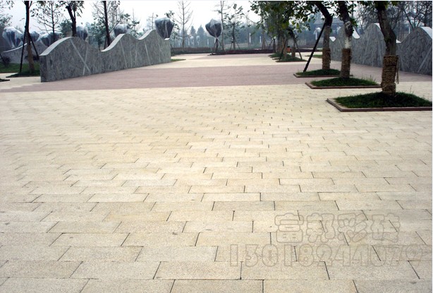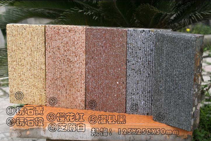 崇州富邦水泥制品厂生产各种彩色路面砖、仿石材波纹砖、机刨砖、透水砖、磨面砖、光面砖、盲道砖、草坪砖、路沿石、路平石、嵌边石、树圈等数十种产品,质量优于JC/T446-200标准。其中仿石材波纹砖更是替代花岗岩的****产品,现下**为流行的包括芝麻白、灌县黑、樱花红、秀石黄、秀石橙等多种颜色。